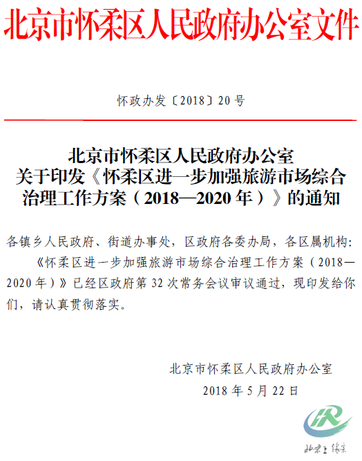 北京市怀柔区人民政府办公室关于印发《怀柔区进一步加强旅游市场综合治理工作方案(2018—2020 年)》的通知