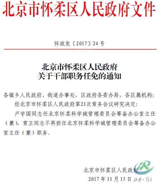 北京市怀柔区人民政府关于干部职务任免的通知