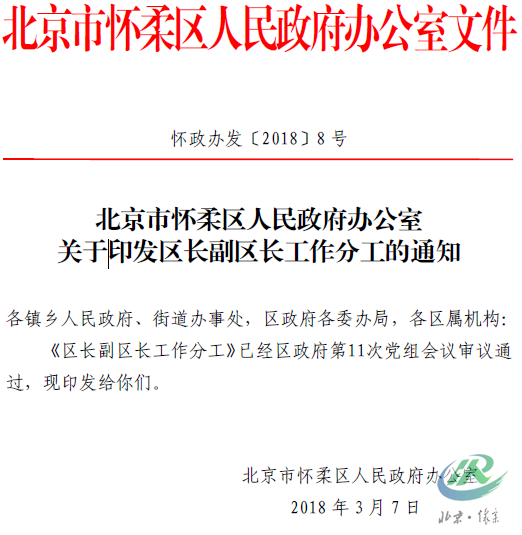 北京市怀柔区人民政府办公室关于印发区长副区长工作分工的通知