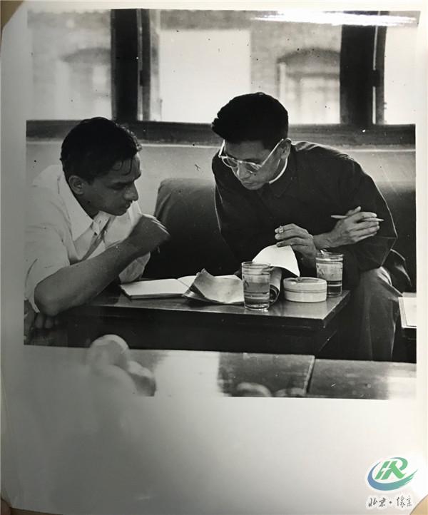 工程推进中,工程技术人员进行了细致地地质勘探和测量,并与国外工程师共同研究工程中的问题。 图一 石厂山测量。 图二 水库溢洪道开山。 图三 中外工程师一起研究工程问题。