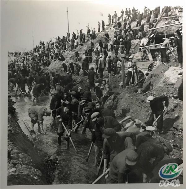 开工后,三万四千多来自首都、专区各地支援建设的农业社员、机关干部、部队官兵、学校师生和工程师、技术员投入到工程建设中。 图一 建设工地热火朝天。 图二 民工们自制的石夯。 图三 机关干部、学校师生和解放军...